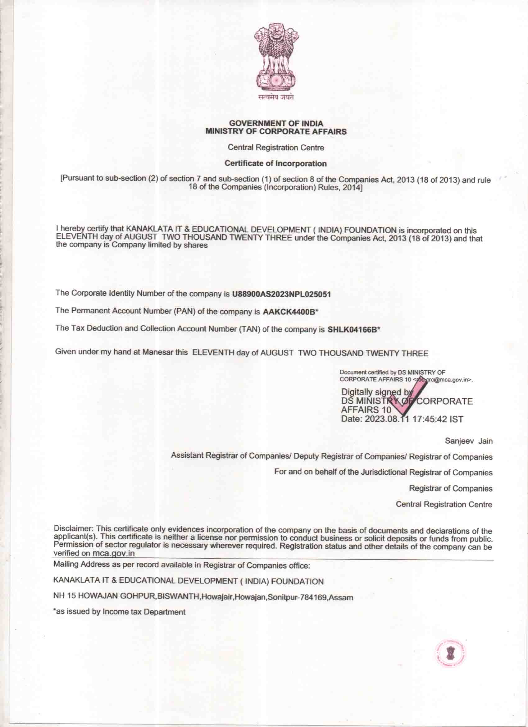 Certificate of Incorporation