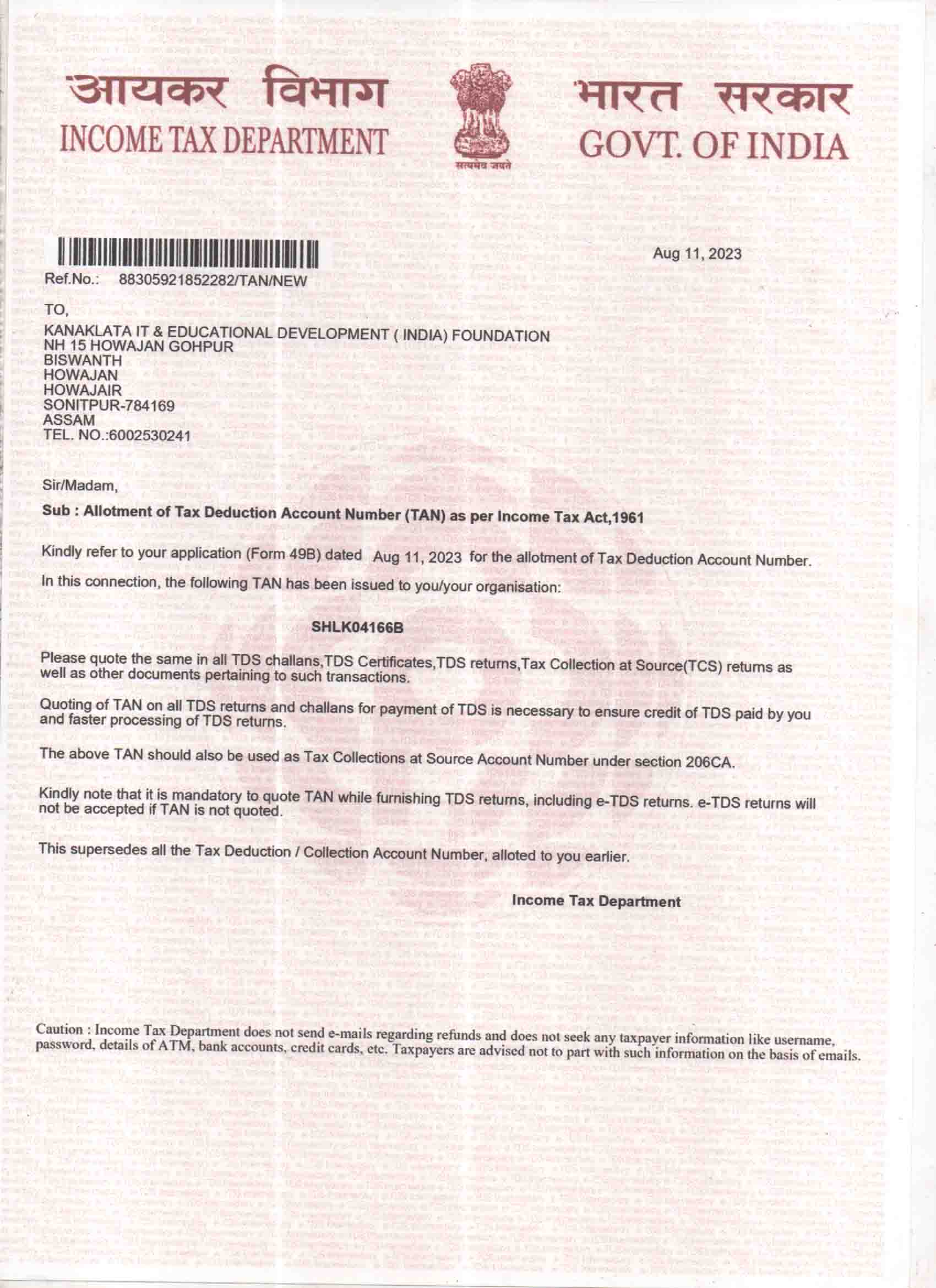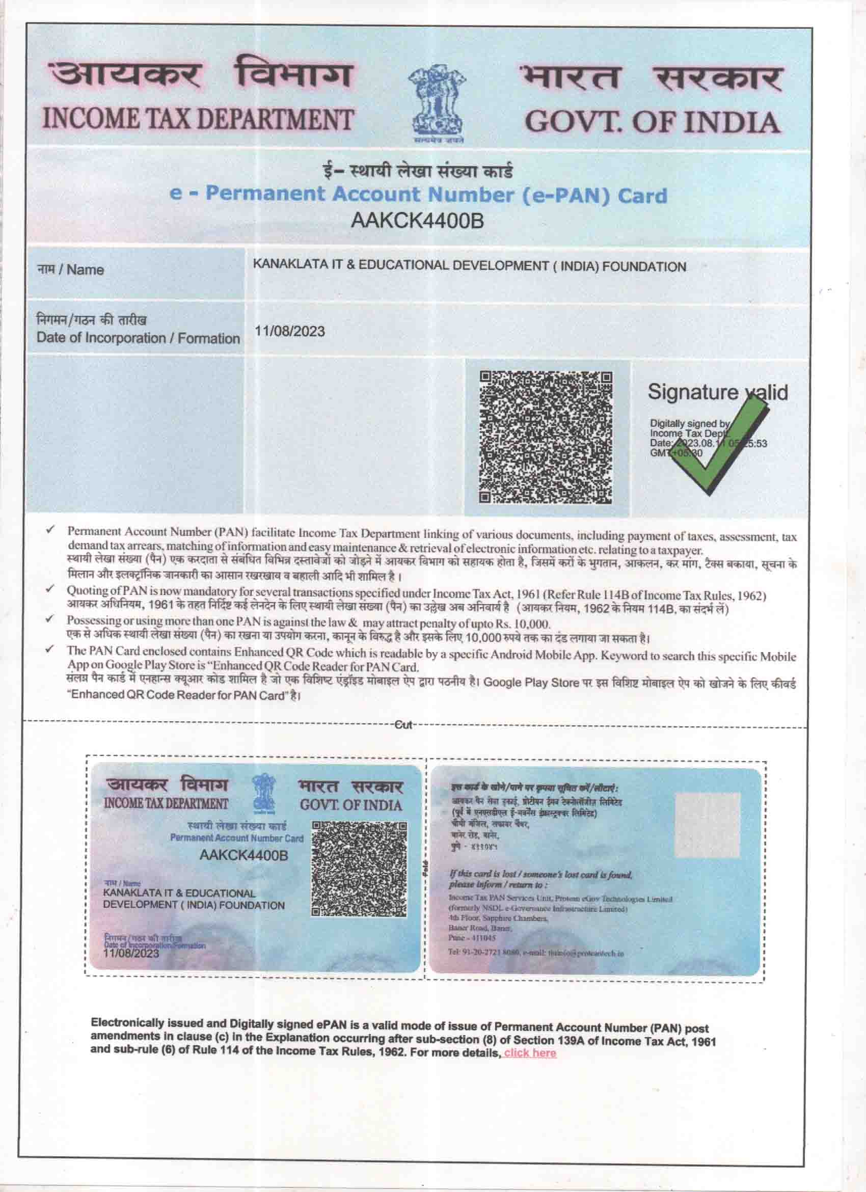 INSTITUTE PAN CARD