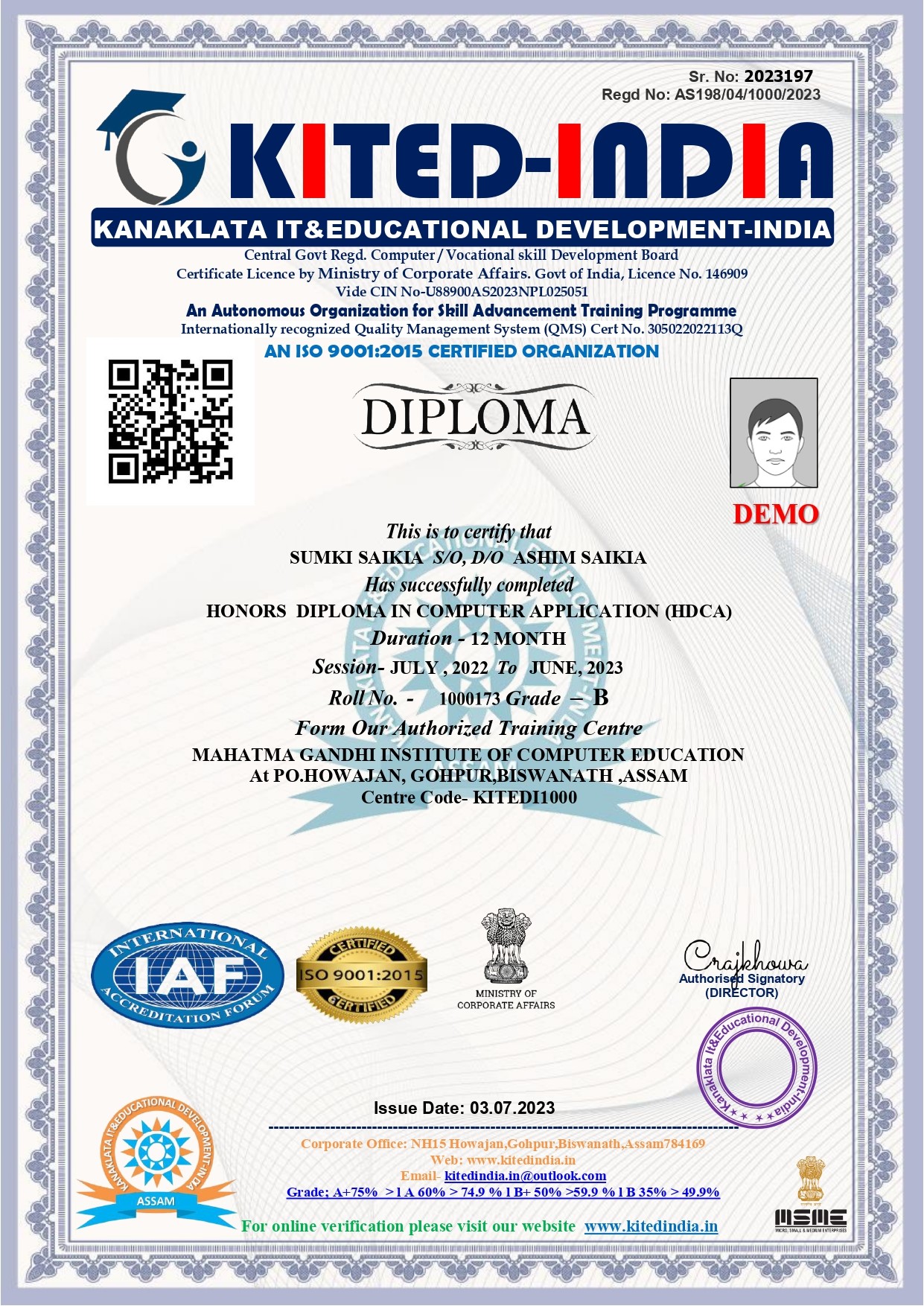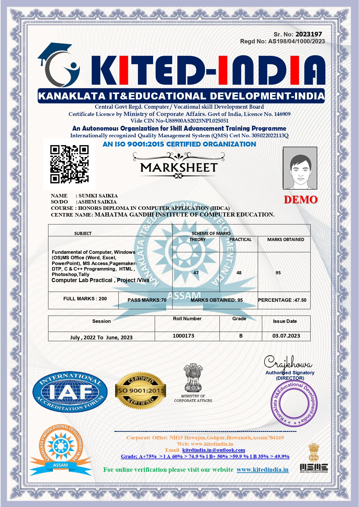 OUR MARKSHEET DEMO